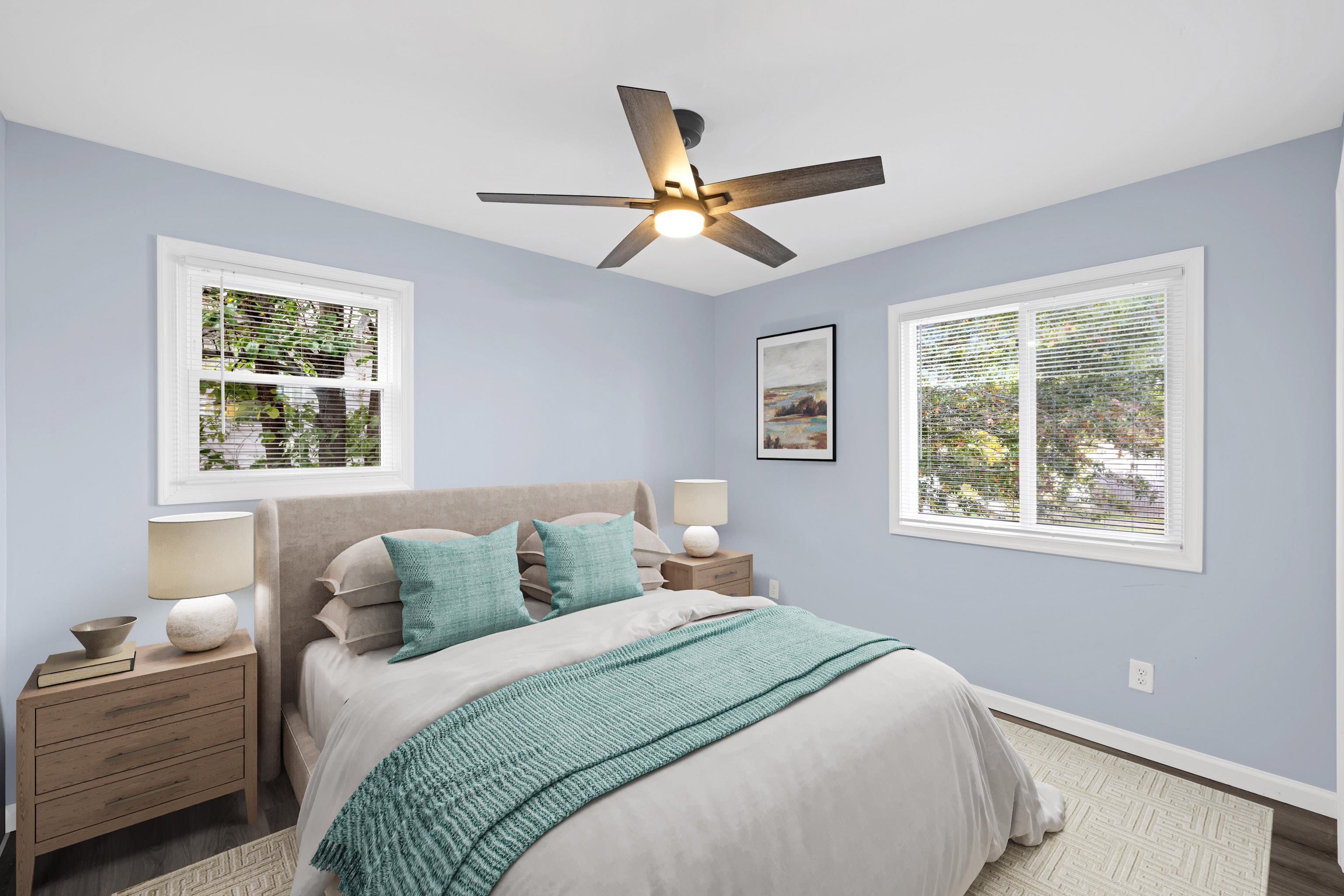 NEW ROOF (12/25)! Completely renovated and move-in ready, this stunning 5 bedroom, 4 bathroom homes with charming blue siding offers the perfect lend of style, comfort, and functionality. The main floor features a bright, open-concept kitchen and living area with elegant finishes and French doors that open onto a spacious deck overlooking the fenced-in back yard-- ideal for entertaining or kicking-back to relax. Three bedrooms and two bathrooms on the main floor with two bedrooms, two bathrooms, laundry room, kitchenette, and large family room are on the lower level with two separate entry doors from the back yard, with plenty of parking for multi-generational living. Easy 25 minute commute to Charlottesville, VA and Shenandoah Valley Regional Airport.