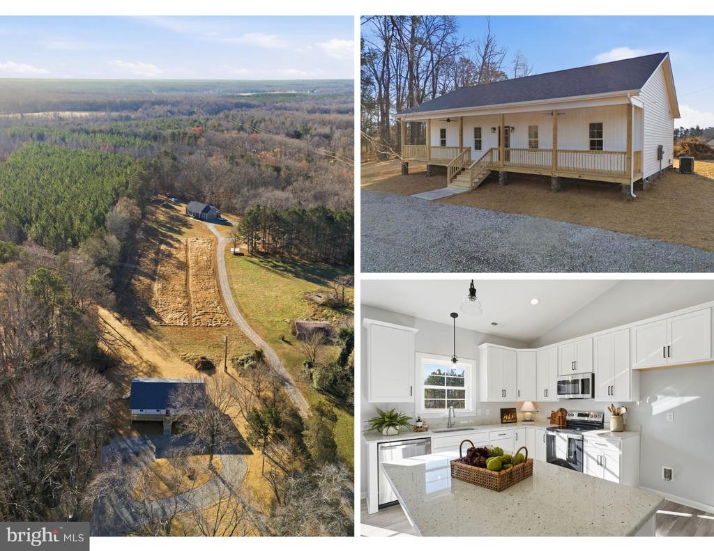 Ready for delivery! This brand new, single-floor 2+ bedroom, 2 bath offering at 475 Fredericks Hall Road delivers modern design and practical living on one private acre in Bumpass, Virginia. This brand-new construction home features an open-concept layout with vaulted ceilings, upgraded countertops, and continuous LVP flooring, creating a bright and cohesive interior. The facade features board & batten vinyl siding and the full covered front porch spans the width of the home, offering a welcoming outdoor living space. A rear deck provides an additional spot for grilling, entertaining, or enjoying the surrounding landscape. The floor plan includes a large primary suite with a walk-in closet & attached bath with double sinks, a second bedroom plus a versatile third room that can function as a sleeping area, guest room, or home office, providing flexibility to tailor the space. The generous utility and laundry room offers convenient everyday access and valuable extra storage. The kitchen and living areas flow seamlessly for both daily life and entertaining, supported by elevated selections and abundant natural light. With an acre of open land, the property also allows space for future additions such as a garage, workshop, or garden.